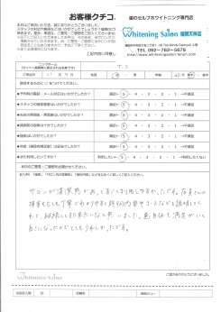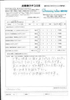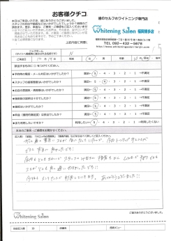 歯医者のホワイトニングは何だか気が進まなかったので博多駅近くのこのサロンを見つけ通い出したところ、みるみる白くなり大満足です。
